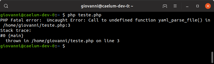 O que aconteceu? O PHP disse que a função yaml_parse_file não existe. Pesquisando um pouco na internet, vi que YAML não faz parte da distribuição padrão do PHP, já que é uma extensão.